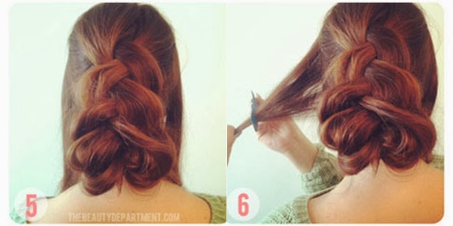 Kemudian sasak dan pelintir dan tarik ke atas kepang. Lekatkan dengan menggunakan jepit.